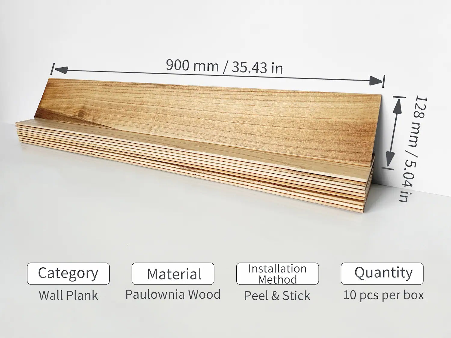 - 【Design】 100% Solid Wood Paulownia Wooded Wall Planks with strong Self-Adhesive tape back strips. Natural Teak Wood color with smooth texture, shows a vintage farmhouse style, enjoy a natural life. By using real wood , its natural vein and texture gives slight color and shade variation, each board has its own unique character that cannot be replicated.