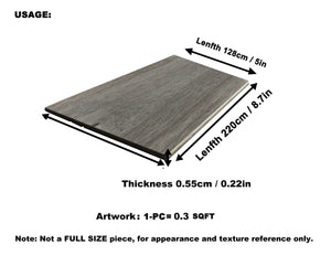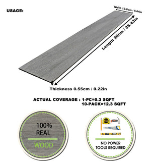 - Dimension: 35.43"X 5.04" Inch (90Cm X 12.8Cm) each pcs. 0.22in (5.5MM) Thickness. Each box contains 10 pieces that cover 12.4 square feet. If you need to cut pieces, please add 3% for waste and reserve.