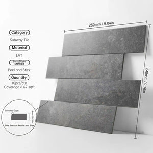 - 【Special Design】Stone bionic material with clear texture. Rough Brown gray stone look large subway tile design. The product design intentionally uses natural variations in color tones and veins, we want to give the product the depth and richness that comes from natural stone. Tightly articulated subway tiles with crisp chamfered edges that require no grouting, and a joint design that makes them indistinguishable from real caulked tiles.