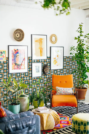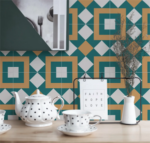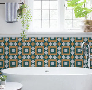 COLAMO Matte Green Orange Mix Self Adhesive Graphic Tile Decals Peel and Stick Backsplash