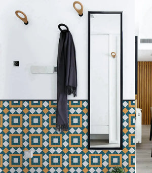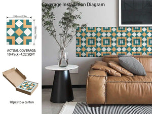- 【Design】 Mediterranean style, the combination of bright orange, white and dark green creates a sunny but somber feeling. Close-joint square tiles with clear edge bevel processed, no grouting required, the seamed design make it just like a real caulked tile
