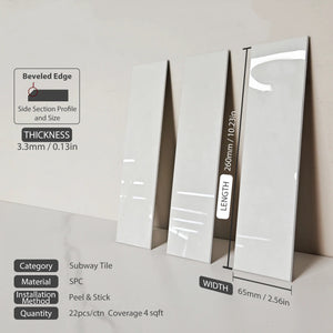 COLAMO Crystal Glossy White Peel and Stick Backsplash Subway Tile