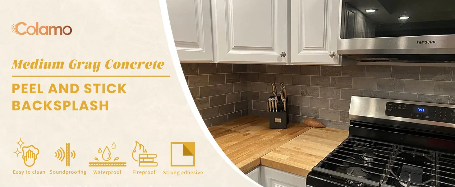 COLAMO Azulejos tipo metro de vinilo gris medio con apariencia de concreto para despegar y pegar