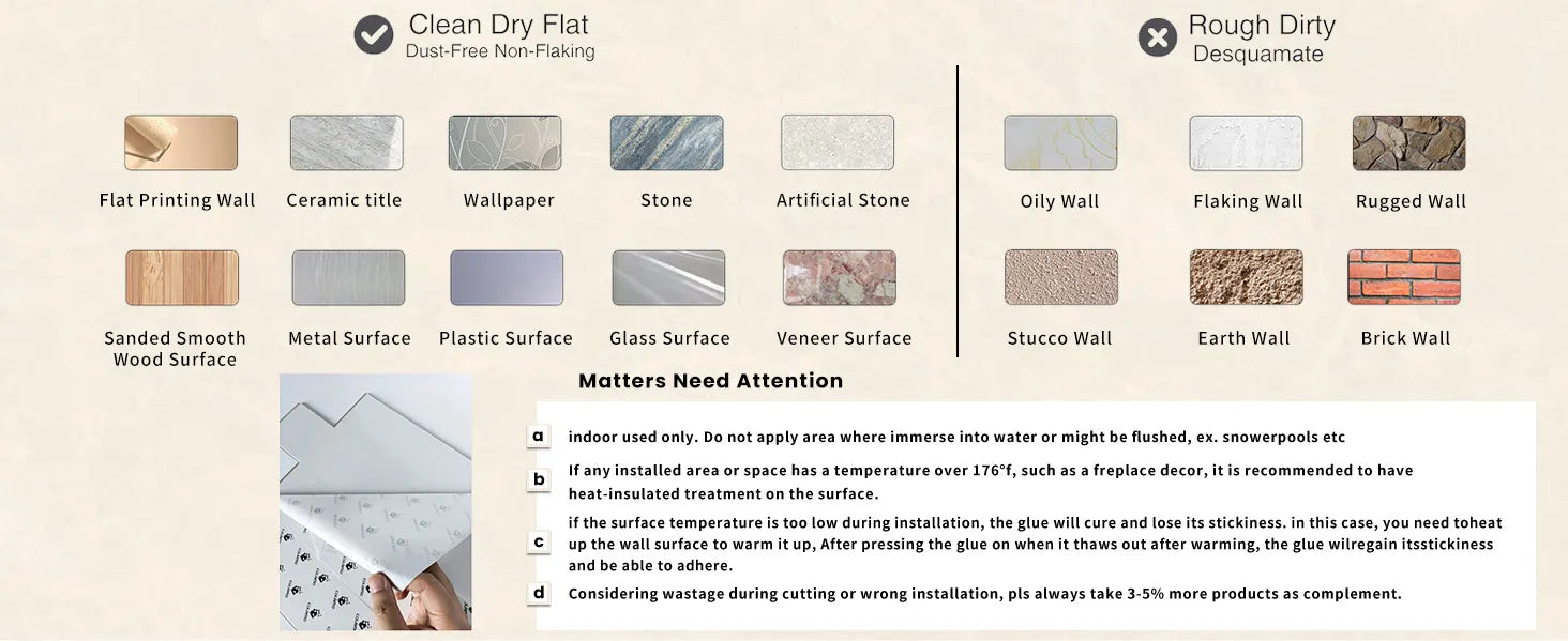 • Resistente al agua y al calor: la superficie de nuestro producto ha sido recubierta con un revestimiento UV, que es resistente al desgaste. Ampliamente utilizado en paredes de islas de cocina, paneles de pared Subway 3D, protector contra salpicaduras de cocina, protector contra salpicaduras de baño, sala de estar y decoración de paredes decorativas. Para su uso alrededor de la chimenea y la estufa, es necesario un aislamiento.