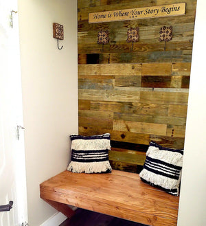 - Madera rústica natural: para capturar esa calidez rústica, cada panel de revestimiento de pared se ha desgastado naturalmente con el tiempo, como ranuras profundamente desgastadas y divisiones naturales. Nuestros paneles de pared son exactamente lo que necesita para transformar su espacio en una creación de diseño personal a medida.