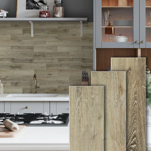 COLAMO Azulejos con apariencia de madera desgastada de roble Placas para salpicaduras impermeables, gruesas y rígidas para despegar y pegar