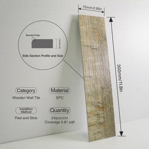 - 【Tamaño y paquete】Cada baldosa mide 11.8” x2.95” x 0.13”, y cada paquete contiene 24 piezas, con un área total de 5.81 pies cuadrados. Siempre recomendamos tomar entre un 5% y un 10% más por cuestiones de pérdidas de instalación.