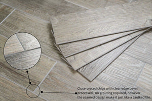- Diseño especial: forma de tablas de traslapado recuperadas de granja vintage, panel de pared 3D de madera desgastada con aspecto de roble, diseño de azulejos de madera natural pegajosa. El producto está diseñado para tener una variación intencional de vetas y tonos naturales. Pretendemos darle al producto la profundidad y riqueza de la madera natural. Azulejos de pared de juntas cerradas con borde biselado transparente procesado, no requiere lechada, el diseño con costura lo hace como un azulejo calafateado real