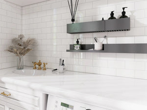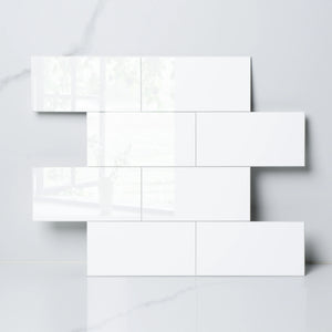 • 【Special Design】Faux marble tile. Pure white large subway tile design. The subway tile is glossy, shiny and it will add a touch of elegance to your home. Close-joint tiles with clear edge bevel processed, no grouting required, the seamed design make it just like a real caulked tile