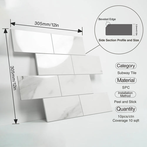 COLAMO Carrara White Peel and Stick Backsplash Baldosa de mármol con apariencia de azulejo de metro blanco para cocina, baño, comedor
