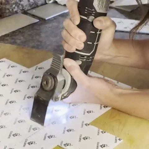 3. Cut: Once the full rectangular outline is marked, use your oscillating saw (multi-tool) to carefully make the cut. Cutting from the back helps protect the tile's finished surface.