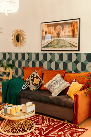- Design : Un design géométrique rétro, composé de trois nuances de couleurs, et une surface mate pour un style sobre et élégant. Carreaux carrés à joints serrés avec bords biseautés nets, sans jointoiement, leur design à joints apparents leur confère un aspect authentique.