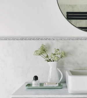 COLAMO Moulure de plinthe adhésive blanche chromée avec couronne, bordure de carrelage