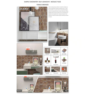 Les carreaux Colamo sont fabriqués à partir de matériaux SPC de qualité supérieure avec un support en PET, qui ne libère pas de produits chimiques nocifs. La plupart des autocollants pour carrelage mural du marché utilisent de la résine époxy, qui laisse une odeur désagréable et jaunit avec le temps.