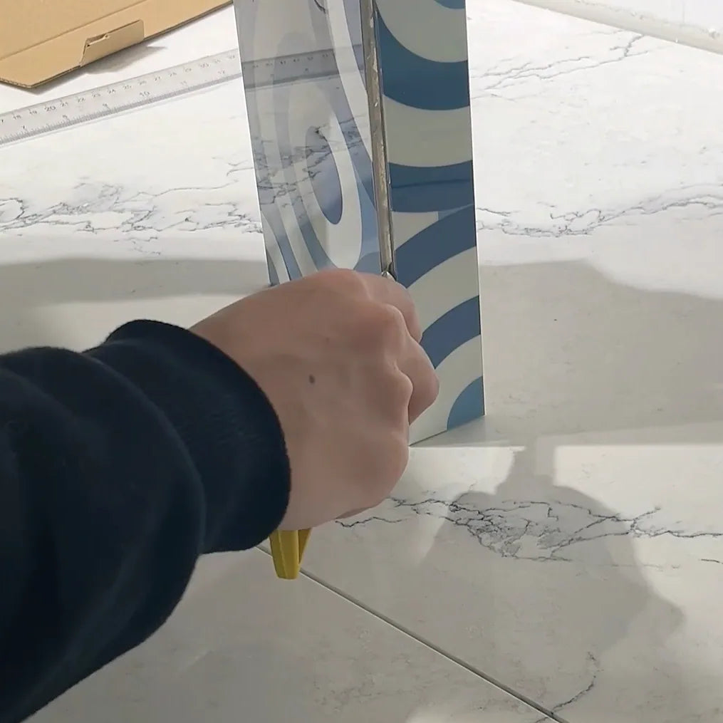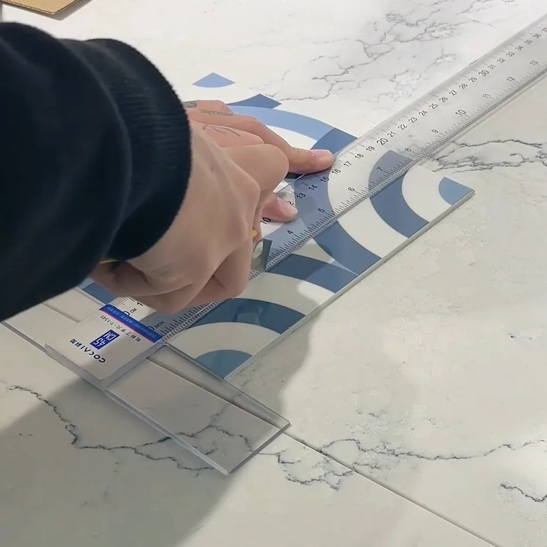 Use a straight ruler or similar straight edge. With a sharp utility knife, gently mark a straight line on the tile surface. Pass the knife along the line a few more times – there's no need to go crazy with the pressure because you're scoring, not trying to cut through the tile! The goal is just to create a visible, clear score line.