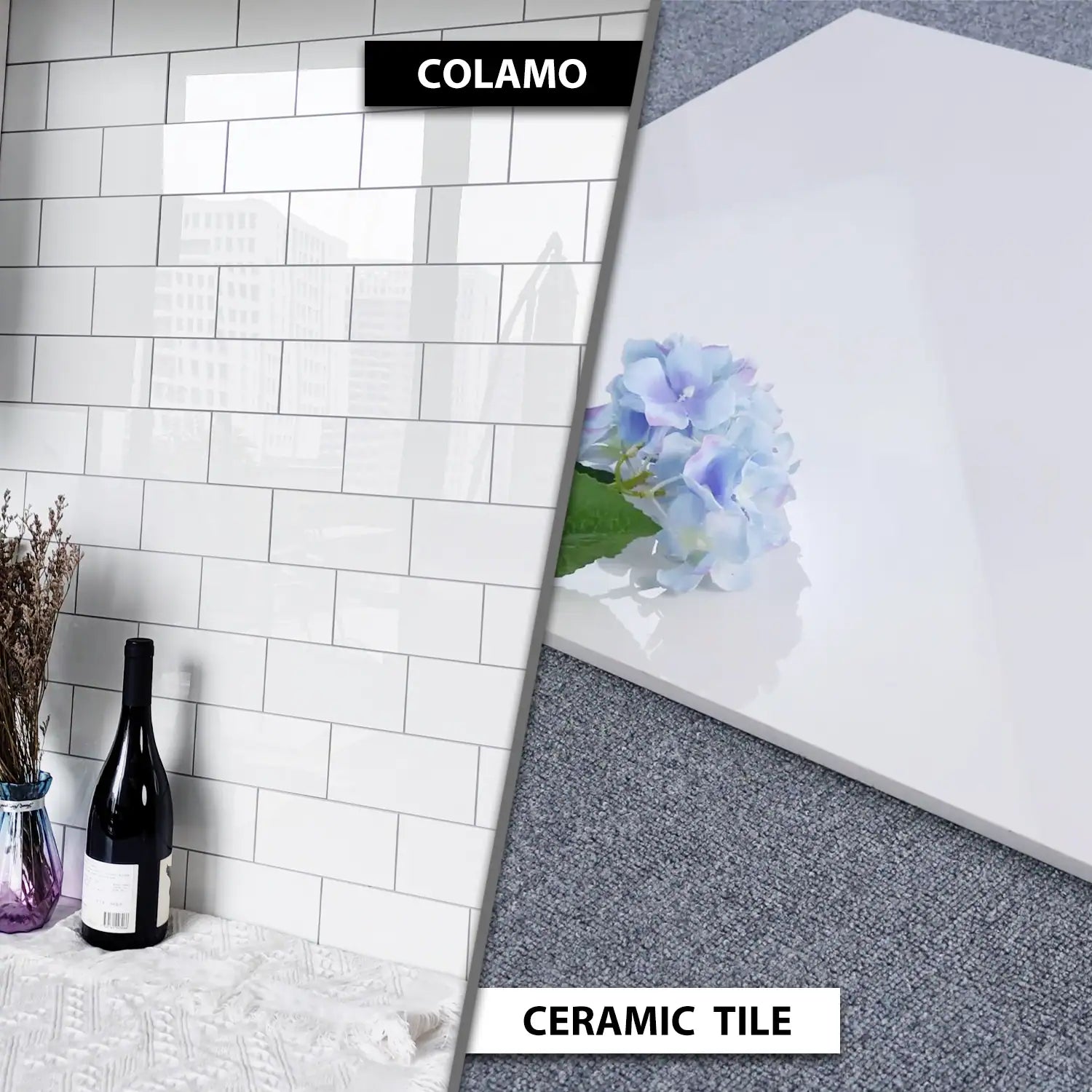COLAMO Pure White Peel and Stick Backsplash Subway Marble Look Tile for Kitchen Bathroom