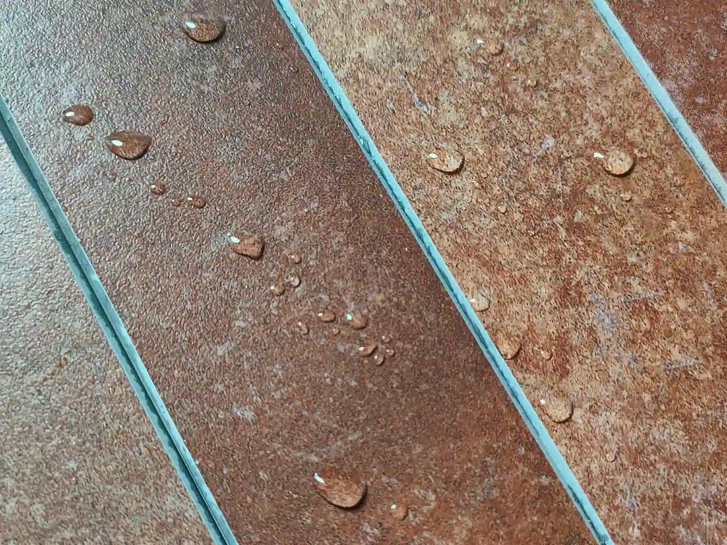 A: Our tiles are waterproof, but the adhesive isn't. Water will not infiltrate from the surface. Unless doing waterproofing treatment on the installed or grouted wall, we don't recommend sticking on the area which immerse in water or with high water flush.