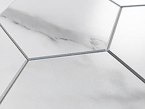 Just peel and stick, with no need for messy grouting or caulking. These tiles deliver a carrara marble high-end look with minimal effort.